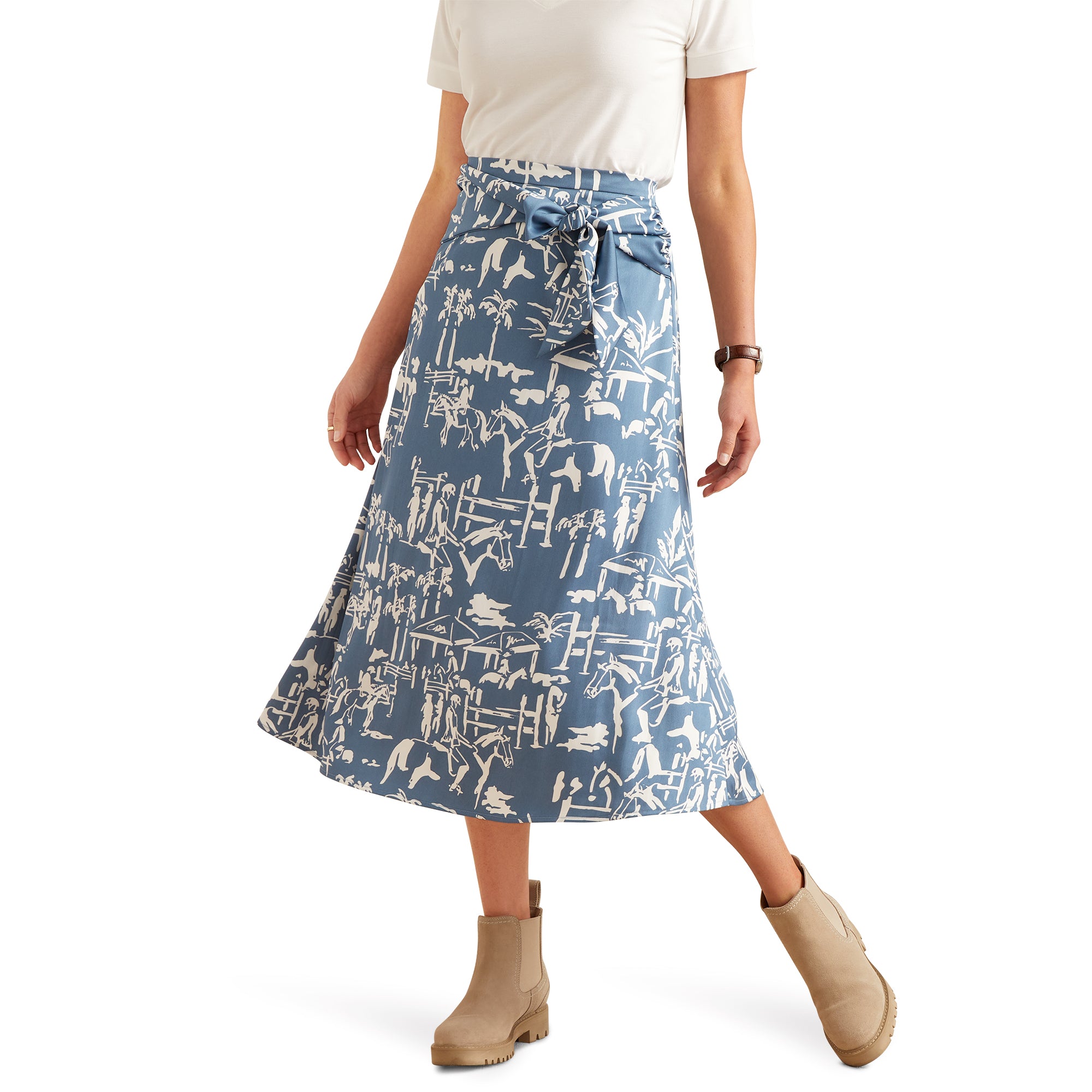 With its faux-tie front and slight A-line cut, the Salford Skirt is equally suited to tall boots or summer sandals. Lightweight and flattering, the delicate fabric moves with you when you’re on the go.