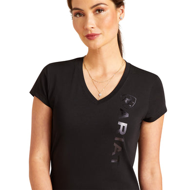 Ariat Womens Vertical Logo V Neck Short Sleeve Tshirt