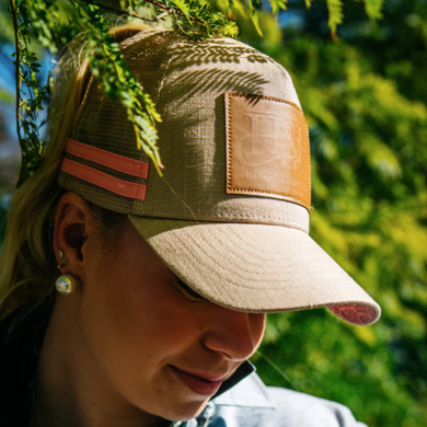 Hitchley & Harrow Trucker Cap - Beige & Baby Pink With Pony Tail Style