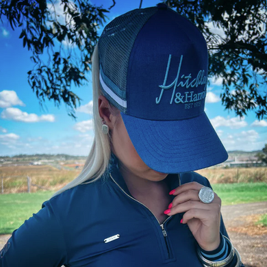 Hitchley & Harrow Trucker Cap - Petrol Blue & Grey