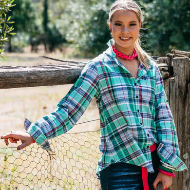 Hitchley & Harrow Peach And Navy Check Collared Ranch Range Arena Shirt