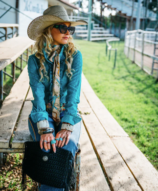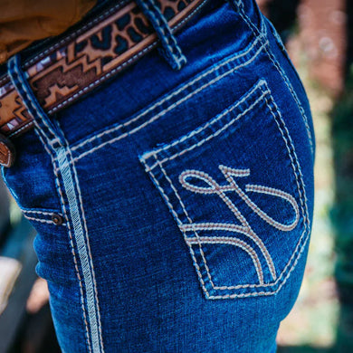 Hitchley & Harrow Ultra High Rise Kentucky Turquoise Heart Stitch Jeans