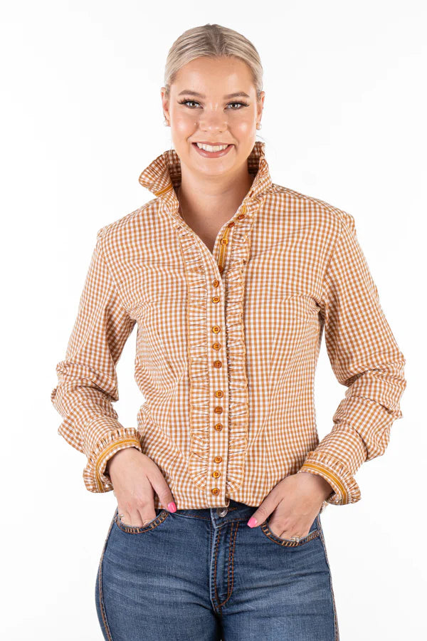Classic cuts and frills will never let you down! Tailored from crisp stretch cotton shirting, the ruffles are feminine and sit beautifully at the neck, torso and cuff. The shirt features exclusive triple buttons and a stand up frill collar. Longer torso and sleeve allowance and increased bicep measurement for comfort while working.