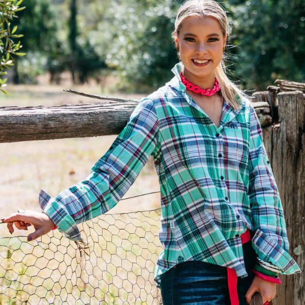 Tailored from a standout emerald green, navy, white and pink 100% lightweight cotton fabric, this relaxed fit, full button through shirt is comfortable and classic. Single button cuff closure and an option to tab the sleeve up. Longer sleeve and body allowance for a great fitting shirt. H&H embroidery front left front pocket, plain right front pocket.
