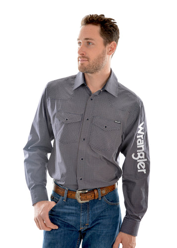 Wrangler Mens Gould Check Logo Western Long Sleeve Shirt