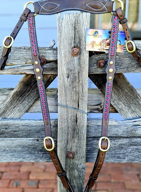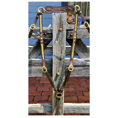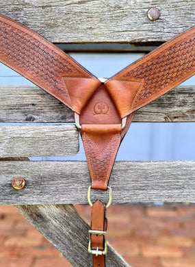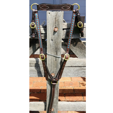 Toprail Stamped Western Breastplate With Turquoise Conchos