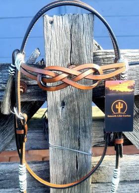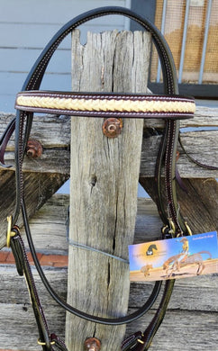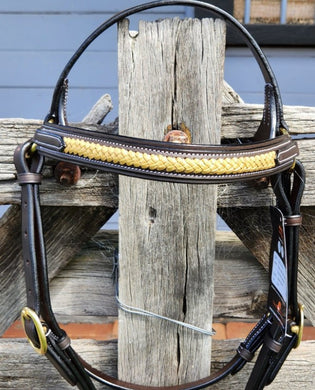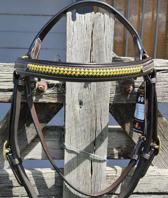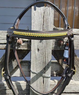Toprail Green & Yellow Thin Plait Leather Bridle