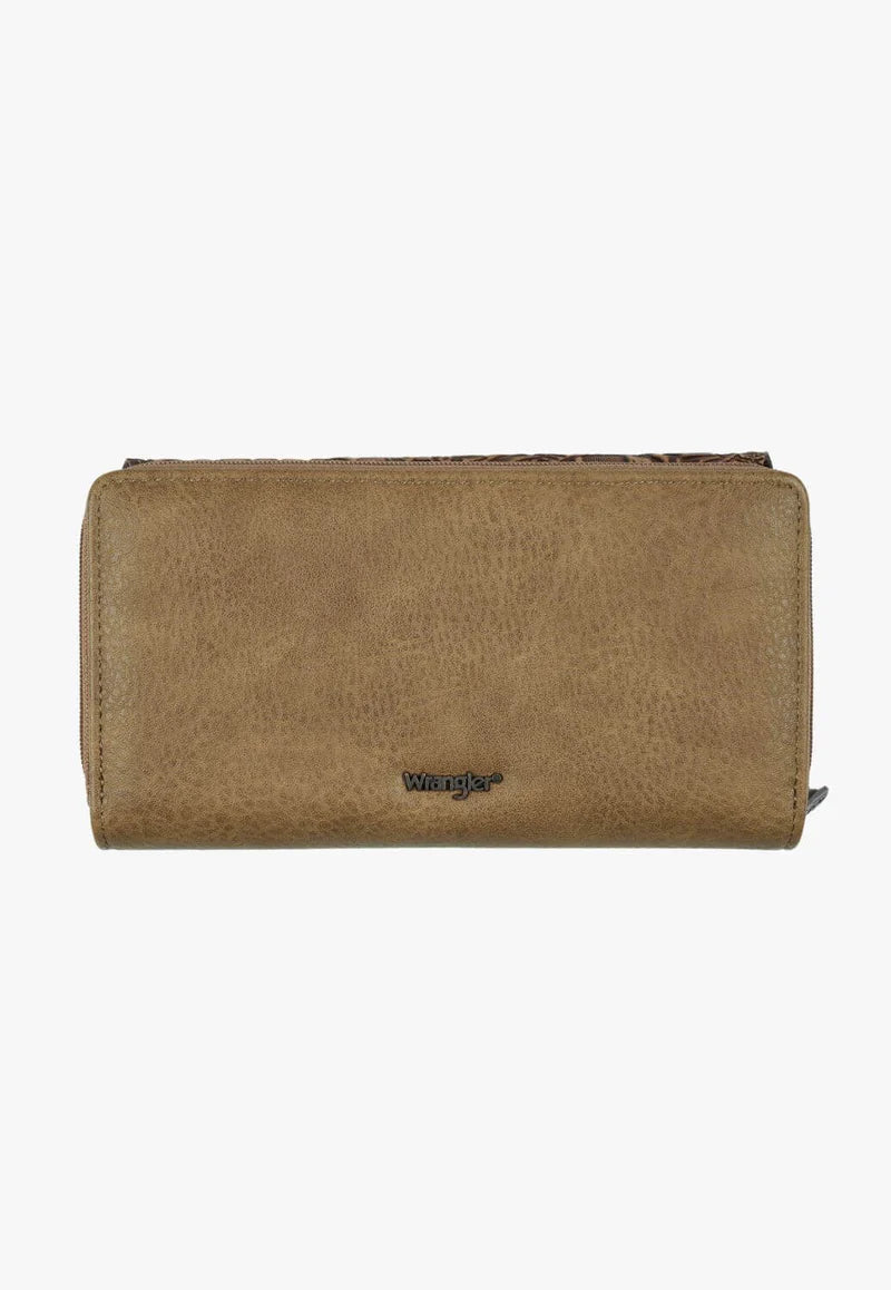 Tooled leather cut out design on front panel
