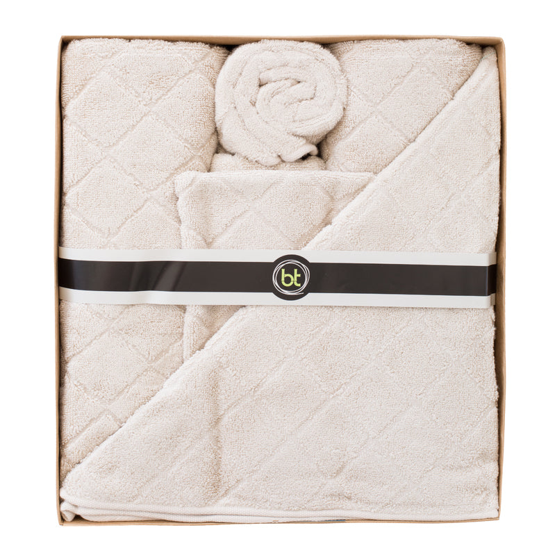 A perfect gift for any occasion, each pack contains 2 bath towels 2 face washers 1 body mitten 1 hand towel and 1 bath mat.