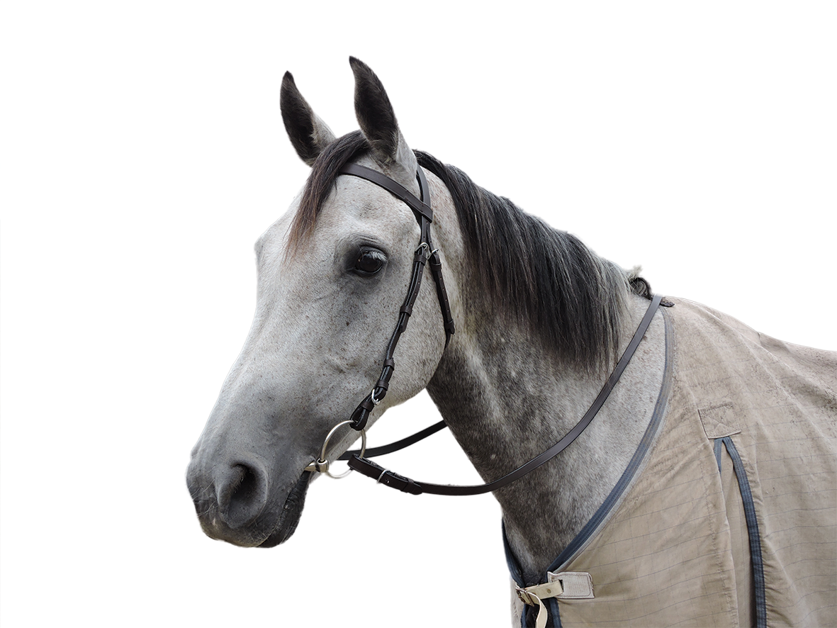 A very simple leather bridle without nosing, it comes complete with flat browband and leather reins.