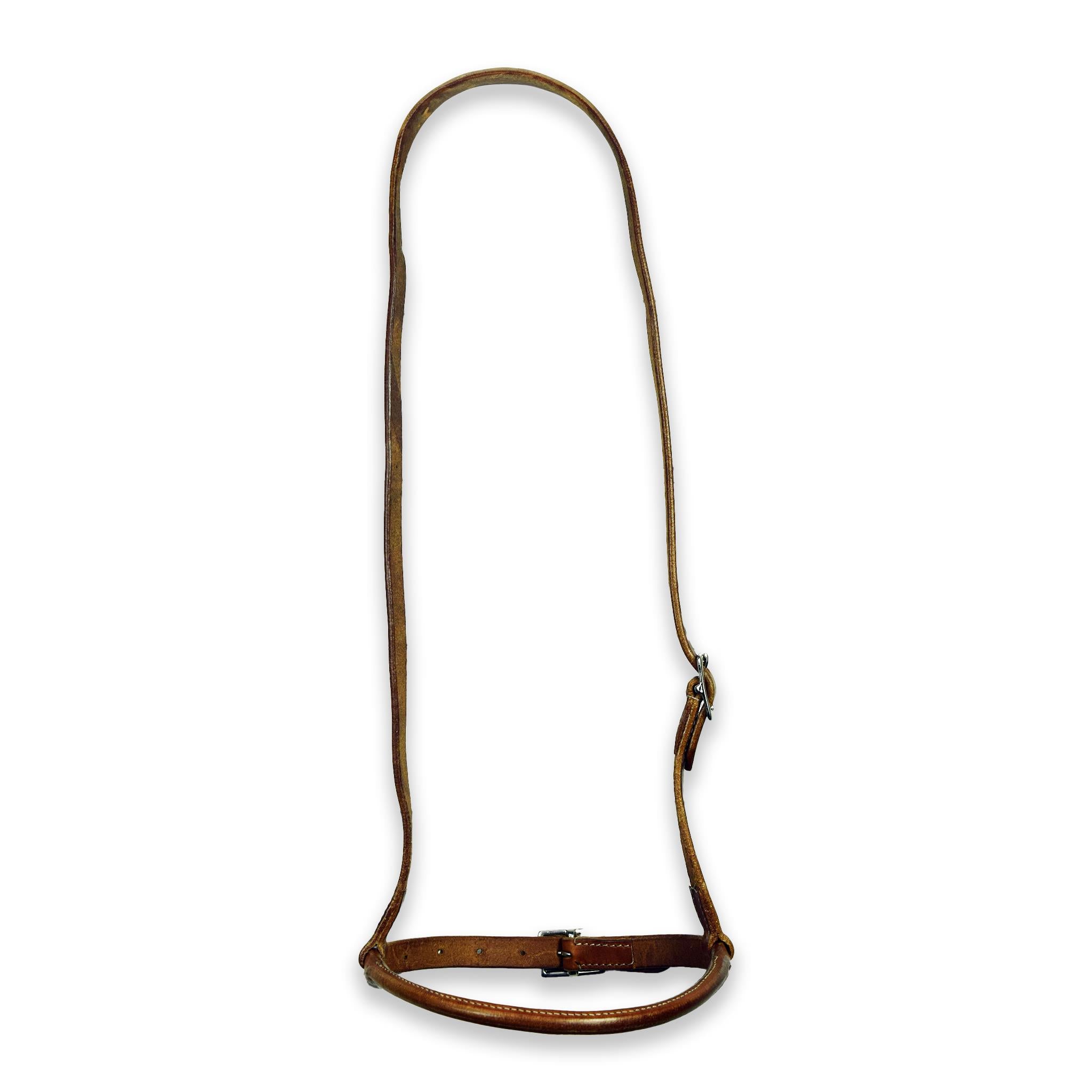 Ezy Ride Noseband, rolled leather. Stainless steel fittings, Natural harness colour.