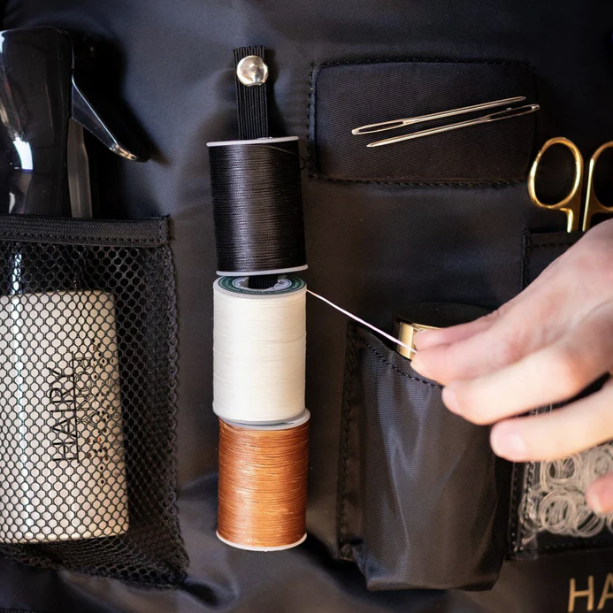 The HAIRY PONY FLAT WAXED HORSE PLAITING THREAD is waxed for maximum grip & flattened for easy needle threading. Both Small & Large sizes are compatible with the reel function on HAIRY PONY PLAITING APRON.