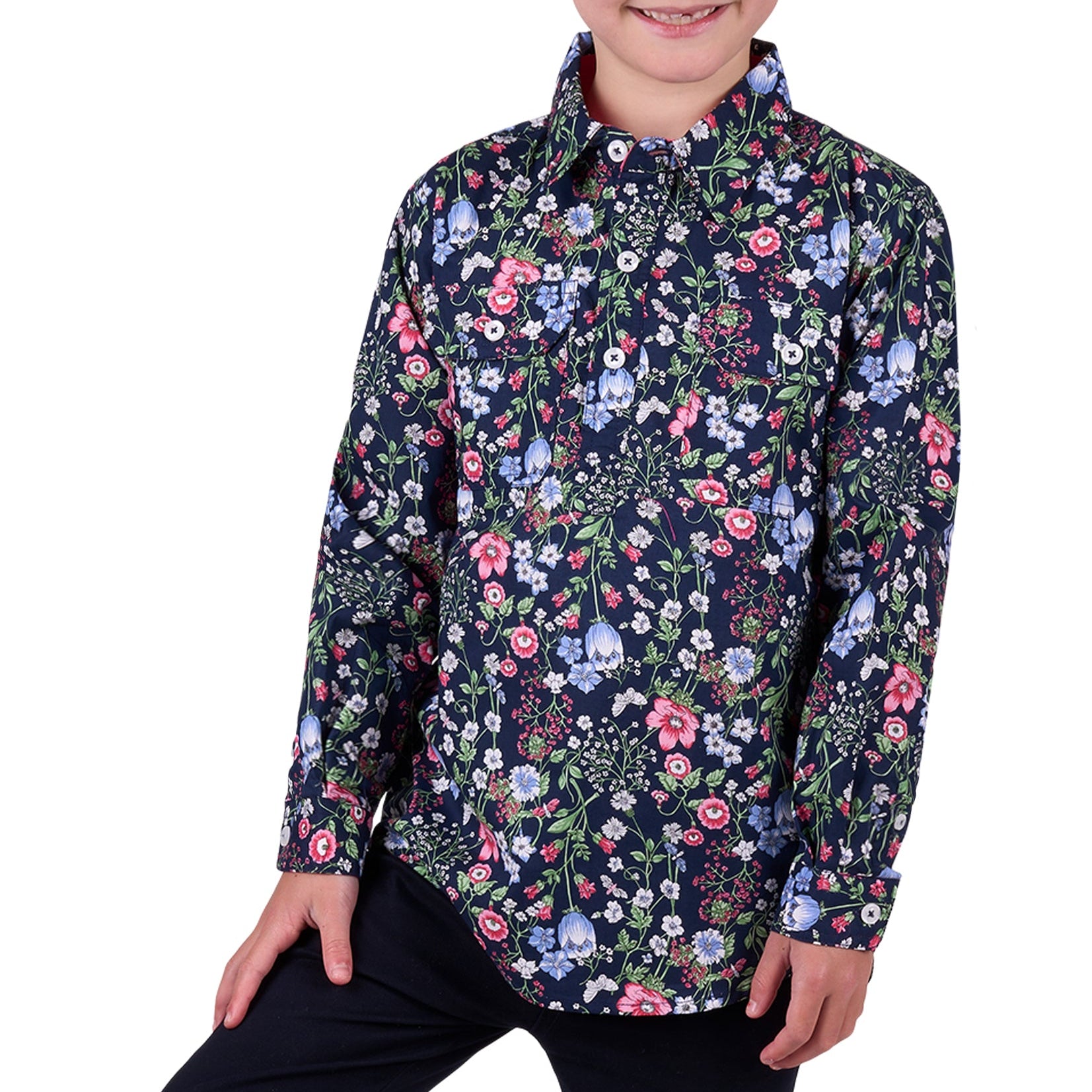 Hard Slog Kids Raya 1/2 Button Long Sleeve Shirt