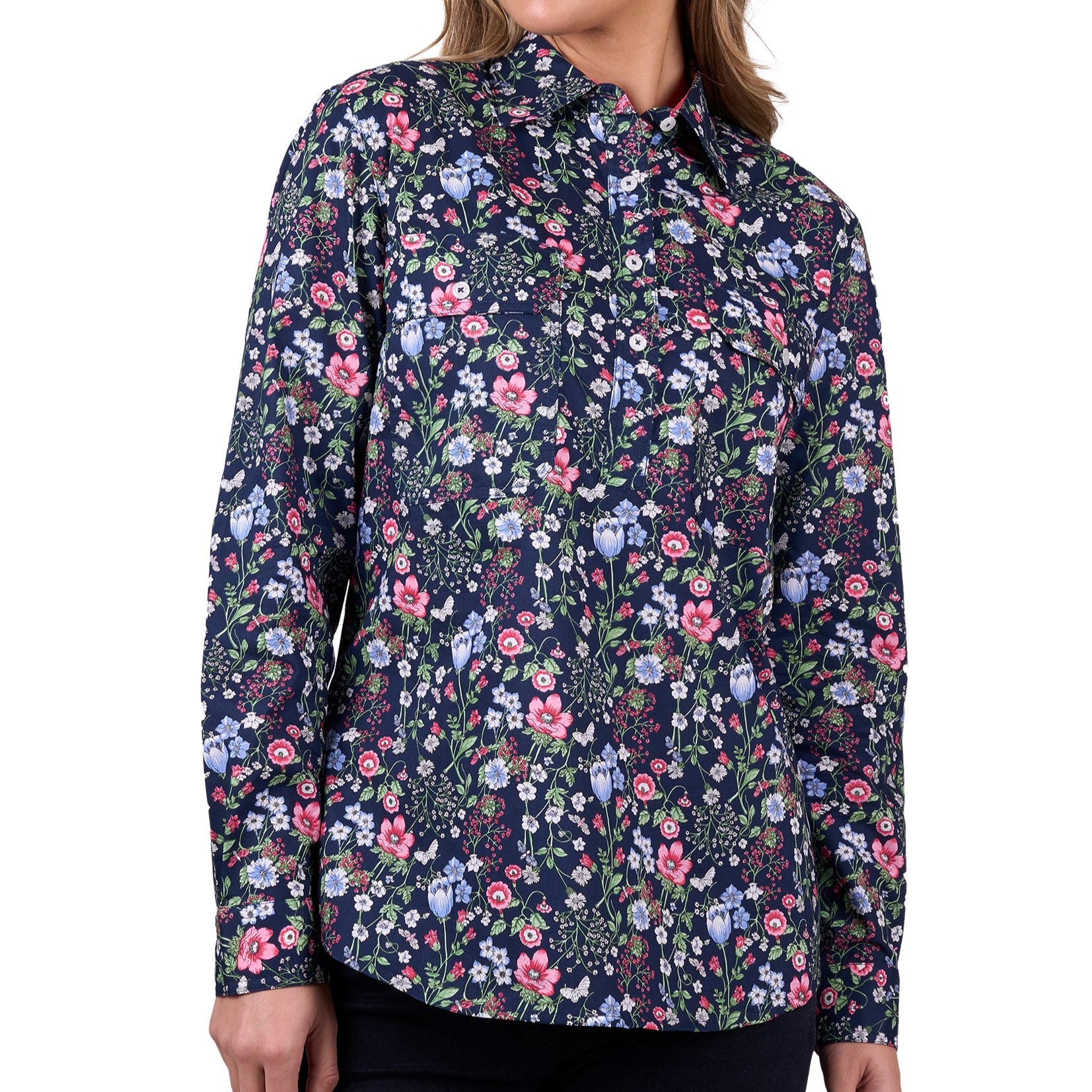 Hard Slog Womens Raya 1/2 Button Long Sleeve Shirt