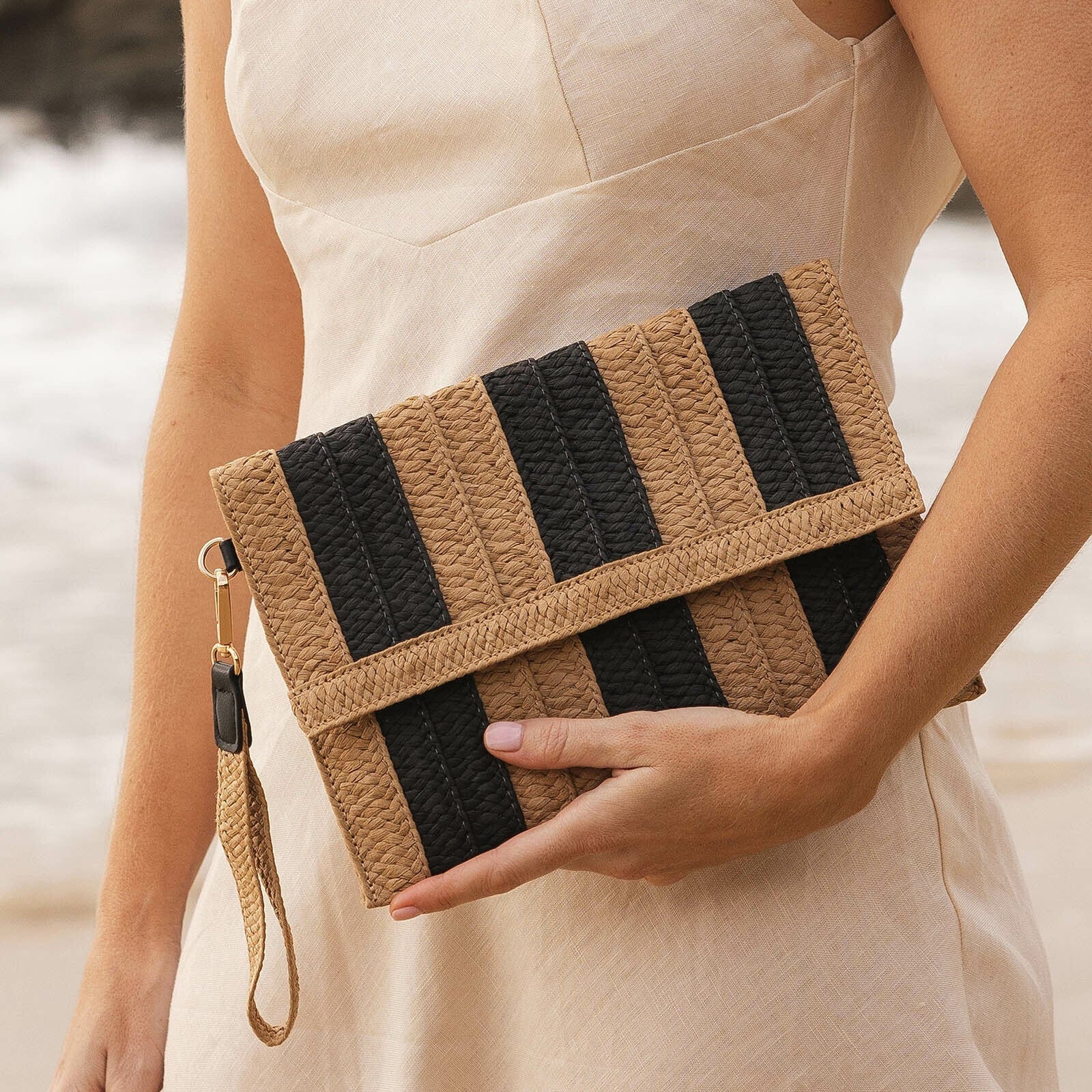 The Louenhide Coco Natural Black Stripe Clutch is designed to elevate your summer style with its refined blend of texture and minimalistic form. Infusing a sense of timeless appeal into your warm-weather wardrobe, this women’s raffia clutch features a black and natural stripe to capture the essence of a laid-back charm. Its sleek silhouette is tailored to carry all your essentials, ensuring you have everything you need for the perfect night out. From flowing summer dresses to tailored evening wear, the Coco Natural Black Stripe straw striped clutch is the epitome of summer versatility.