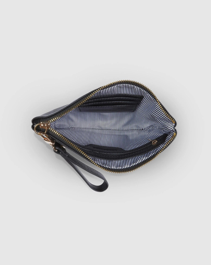 The Louenhide Mimi Black Clutch is your new everyday staple. Where elegance meets functionality, this compact silhouette can effortlessly transform your style from day to night. Style and wear the webbing wristlet for a more casual everyday look, or interchange for the matching vegan leather wristlet to elevate your night out attire. Made from a smooth vegan leather, this casual women's clutch offers ample space fit for all your everyday essentials. Designed in classic summer neutrals, you can style the Mimi Wallet with your favourite Louenhide crossbody bag or carry her on its own. Your options are endless!