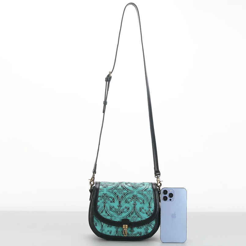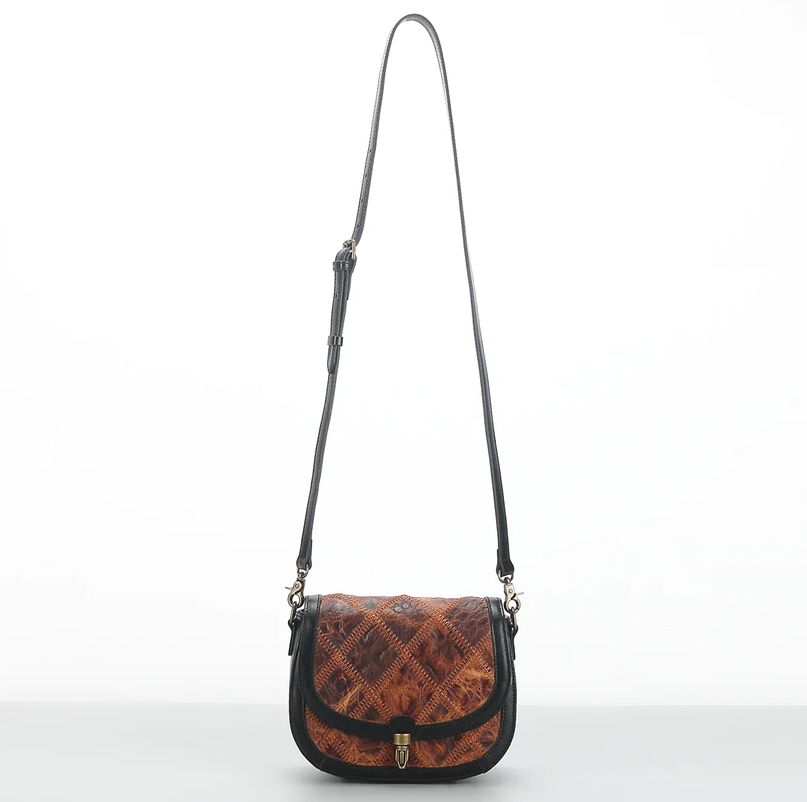 Designed to keep your essentials safe and secure. This timeless saddle bag also features a unique and sophisticated vintage patchwork pattern.