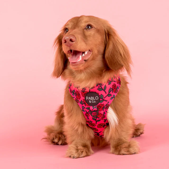 If you're struggling to find the perfect fit harness well here is your answer! Our harnesses are FULLY adjustable, meaning you can adjustable the neck and chest straps to the desired length.