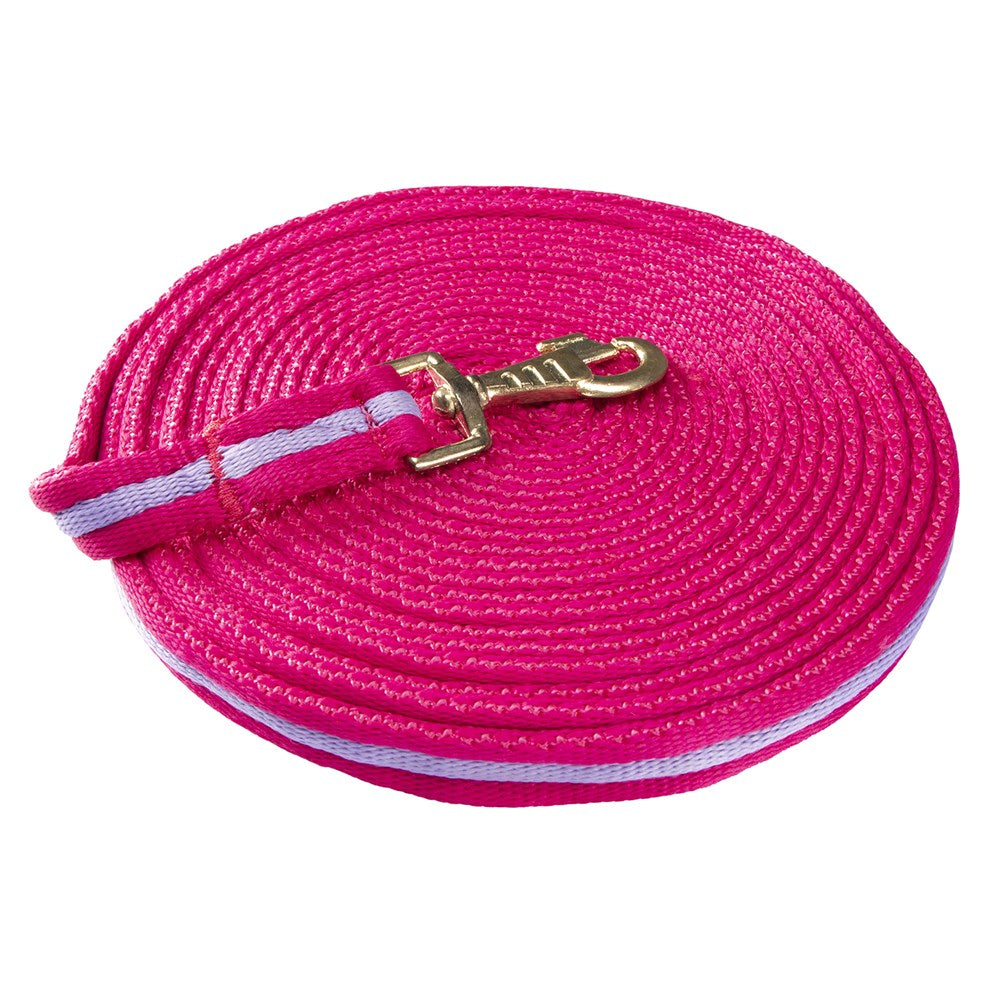 The Showmaster Soft Web Lunge Lead is a premium horse training tool designed for comfort and control. This 8 metre lead features a 25cm cushioning web with a contrasting centre stripe for enhanced visibility. Crafted for durability and ease of use, it comes complete with a sewn hand loop and snaphook, ensuring secure attachment and handling during lunging sessions.