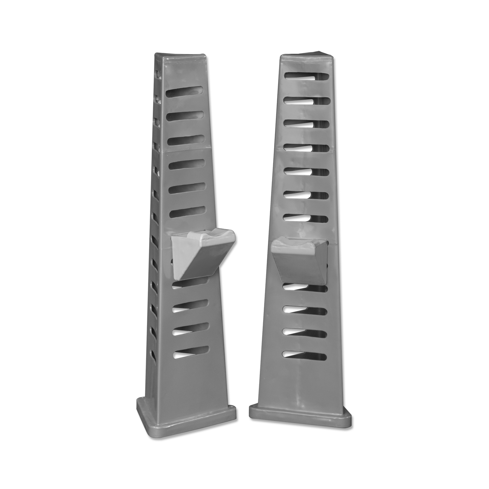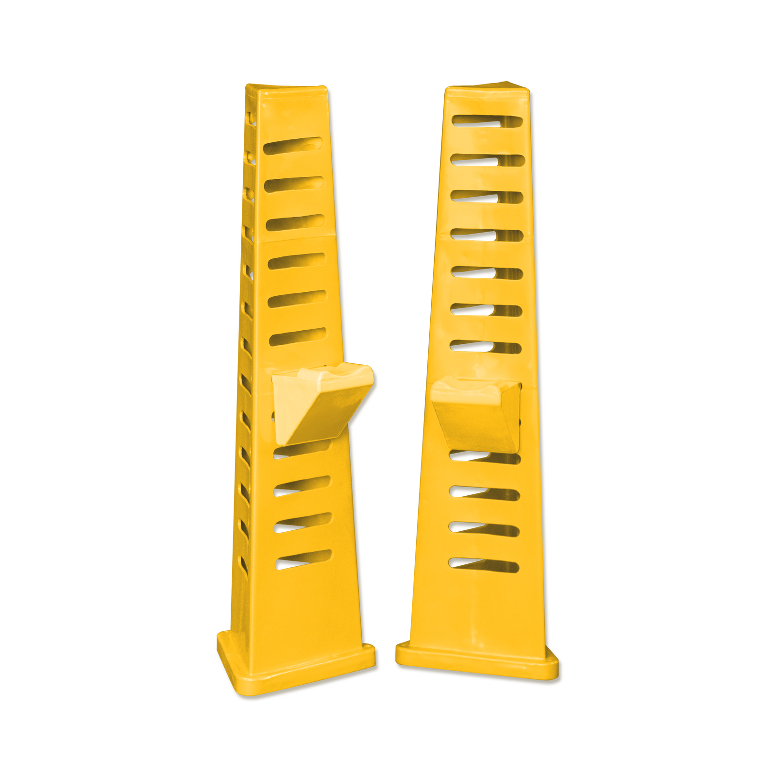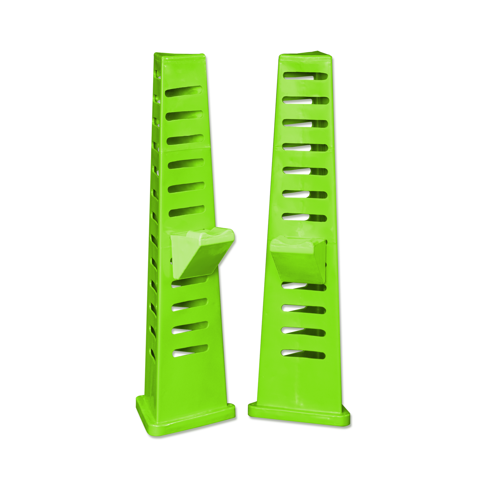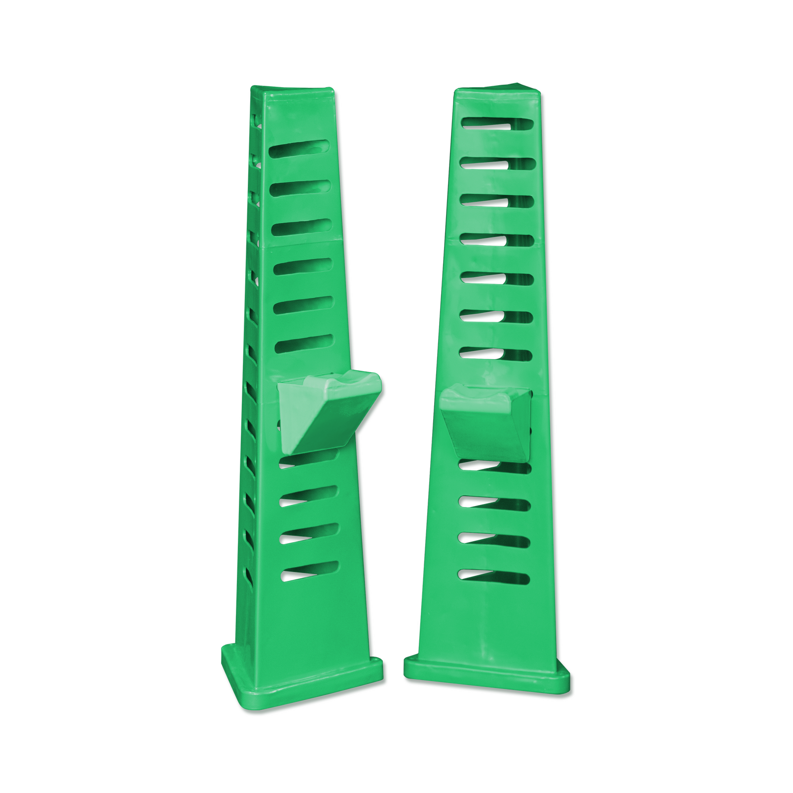 The Tri-jump stands with cups is an easy assembly unit for practicing jumps.